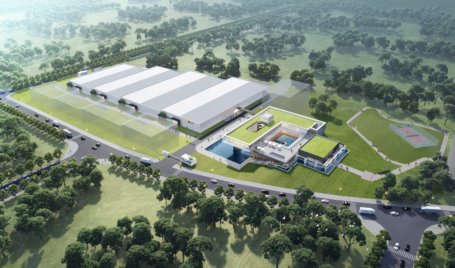 項目簡介:強調(diào)規(guī)劃布局的均好性——創(chuàng)造高效、便捷的廠區(qū)空間,良好的規(guī)劃布局才能使整個生活舒適度最大化。 強調(diào)空間形態(tài)的多樣性——營造豐富的建筑空間,整體空間形態(tài)上,通過景觀軸線聯(lián)系廠區(qū)與辦公區(qū),形成動靜分區(qū)的整體格局。